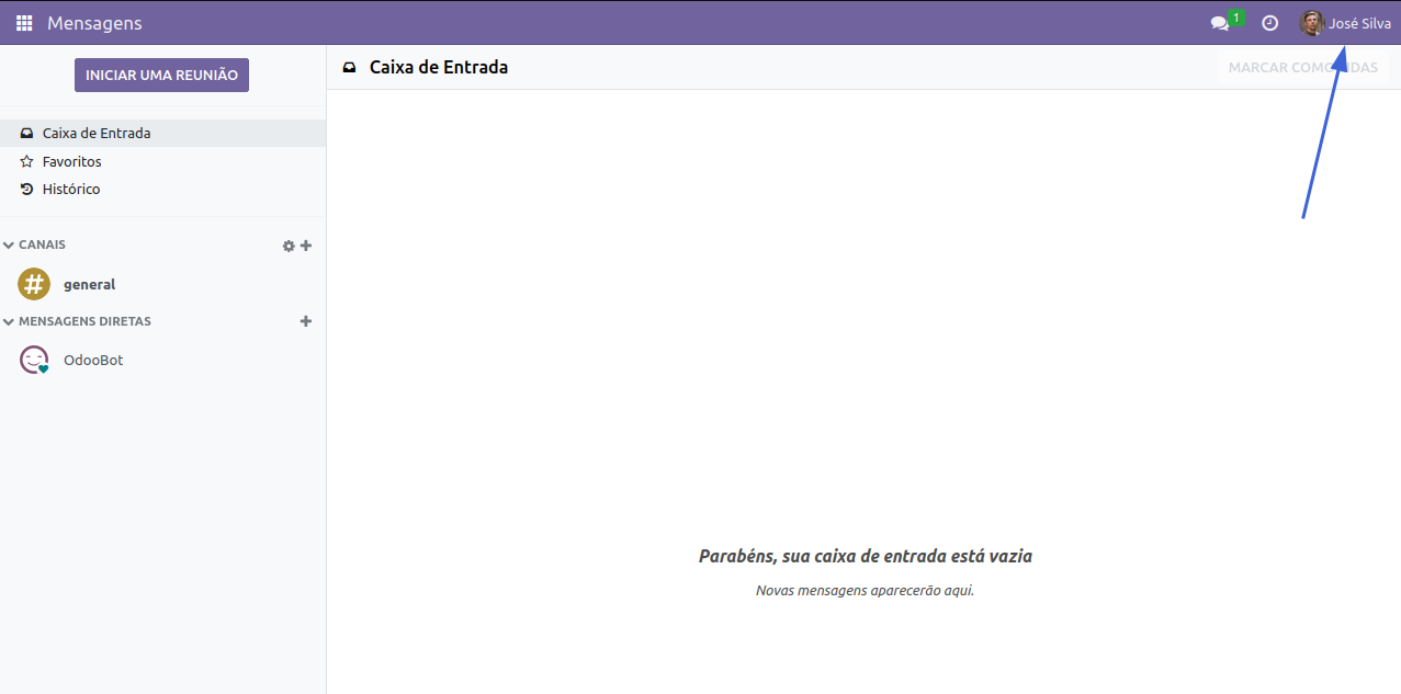 7. Se tudo ocorrer bem, você estará logado com o usuário já existente no Active directory e agora no Odoo. Você pode logar-se como Administrador do Odoo e verificar os usuários criados a partir de login via Active Directory.